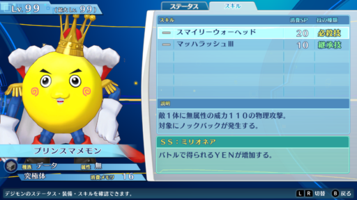 • プリンスマメモンはサポートスキルの効果でバトルで得られるYENが2倍になる